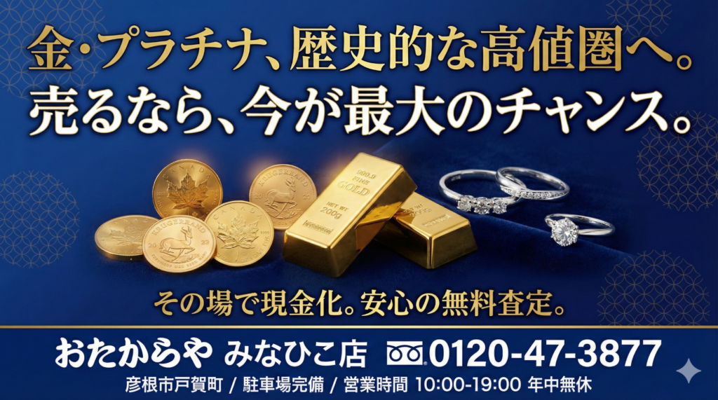 【滋賀県・彦根】【金】【プラチナ】買取≪相場速報≫見逃し厳禁! 高価買取おたからや みなひこ店